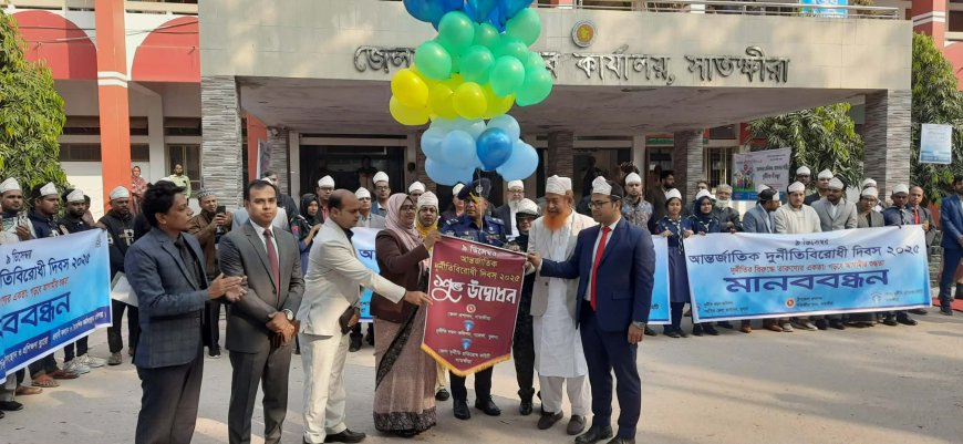 মোঃ কামাল উদ্দিন , সাতক্ষীরা প্রতিনিধি : "দুর্নীতির বিরুদ্ধে তারুণ্যের একতা : গড়বে আগামীর শুদ্ধতা" এই প্রতিপাদ্যকে সামনে রেখে সাতক্ষীরায় আন্তর্জাতিক দুর্নীতি বিরোধী দিবস ২০২৫ উপলক্ষে মানববন্ধন ও আলোচনা সভা অনুষ্ঠিত হয়েছে। মঙ্গলবার (০৯ ডিসেম্বর) সকাল ৯টায় সাতক্ষীরা জেলা প্রশাসকের কার্যালয়ের সামনে জেলা প্রশাসন, দুর্নীতি দমন কমিশন সজেকা খুলনা ও জেলা দুর্নীতি প্রতিরোধ কমিটির সাতক্ষীরার আয়োজনে জেলা দুর্নীতি প্রতিরোধ কমিটির সভাপতি বিশিষ্ট সমাজসেবক আলহাজ্ব ডা. আবুল কালাম বাবলা এঁর সভাপতিত্বে প্রধান অতিথি হিসেবে জাতীয় ও দুদক পতাকা উত্তোলন এবং বেলুন-ফেস্টুন উড়িয়ে আন্তর্জাতিক দুর্নীতি বিরোধী দিবসের অনুষ্ঠানিক উদ্বোধন করেন সাতক্ষীরা জেলা প্রশাসক মিজ্ আফরোজা আখতার, জেলা পুলিশ সুপার মোঃ আরেফিন জুয়েল বিপিএম, সাতক্ষীরা সিভিল সার্জন ডা. মোঃ আব্দুস সালাম, অতিরিক্ত জেলা প্রশাসক (সার্বিক) বিষ্ণুপদ পাল, দুর্নীতি দমন কমিশন সজেকা খুলনার সহকারী পরিচালক মোঃ জাহিদ ফজল প্রমুখ।