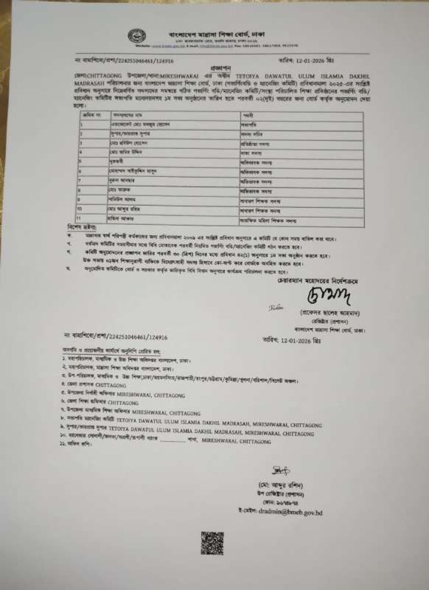 মিরসরাই প্রতিনিধিঃ চট্টগ্রামের মিরসরাই উপজেলার ঐতিহ্যবাহী দ্বীনি শিক্ষা প্রতিষ্ঠান তেতৈয়া দাওয়াতুল ইসলাম দাখিল মাদ্রাসার ম্যানেজিং কমিটির সভাপতি হিসেবে নির্বাচিত হয়েছেন এডভোকেট মনজুর হোসেন।