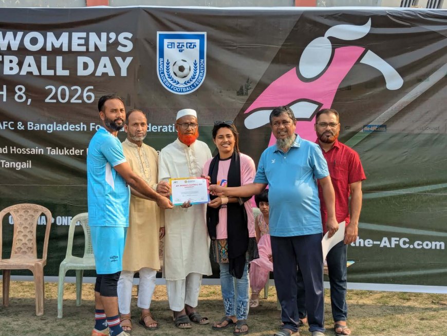 নূর আলম সুমন, গোপালপুর (টাঙ্গাইল) প্রতিনিধি এএফসি ওমেন্স ফুটবল ডে ২০২৬ উপলক্ষে টাঙ্গাইলের গোপালপুরে ফুটবল ফেস্টিবল অনুষ্ঠিত হয়েছে। এ উপলক্ষে সূতী ভি.এম পাইলট মডেল সরকারি উচ্চ বিদ্যালয় মাঠে এক বর্ণাঢ্য ফুটবল উৎসবের আয়োজন করা হয়।