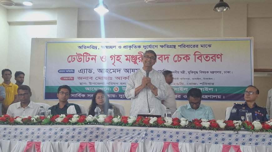 বাসাইলে ঢেউটিন ও গৃহ মঞ্জুরীর চেক বিতরণ করলেন মুক্তিযুদ্ধ বিষয়ক মন্ত্রী