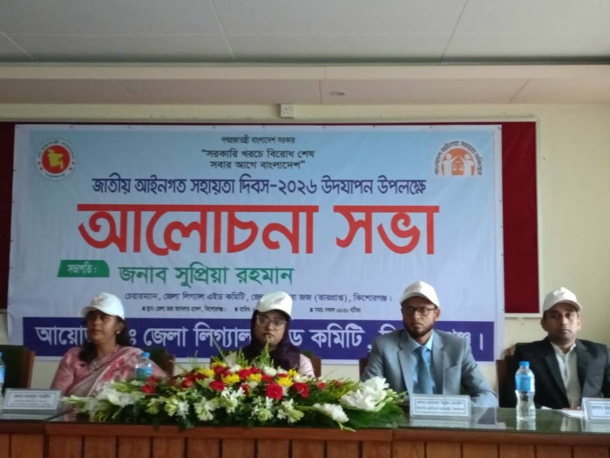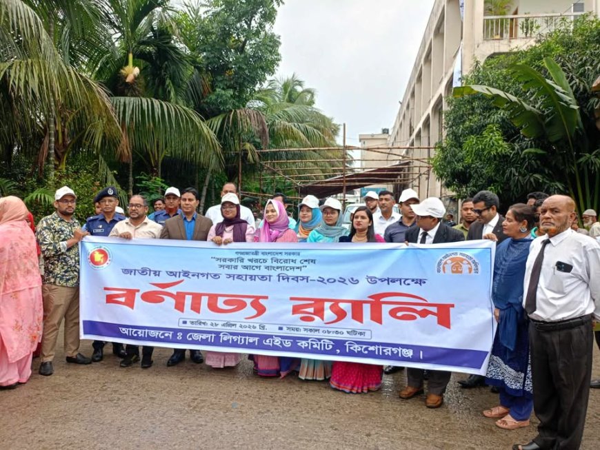 জনসাধারণকে সরকারি আইনগত সহায়তা কার্যক্রম সম্পর্কে সচেতন করার লক্ষ্যে কিশোরগঞ্জ জেলা লিগ্যাল এইড কমিটি “জাতীয় আইনগত সহায়তা দিবস ২০২৬” উপলক্ষে দিনব্যাপী নানা কর্মসূচির আয়োজন করে।