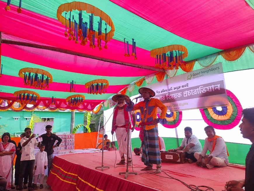 অনুষ্ঠানের শুরুতেই শুভেচ্ছা বক্তব্য ও প্রোগ্রামের উদ্দেশ্য তুলে ধরেন সিডিপি ম্যানেজার দীপক কুমার দাস। তিনি বলেন, ‘শিশুদের অধিকার রক্ষায় পরিবার, সমাজ এবং রাষ্ট্রকে একযোগে এগিয়ে আসতে হবে। গুড নেইবারস এ বিষয়টিকে সর্বোচ্চ গুরুত্ব দিয়ে কাজ করছে।’ অনুষ্ঠানে সিডিপি প্রোগ্রাম ফ্যাসিলিটেটর দীনা রিছিলের সঞ্চালনায় উপস্থিত ছিলেন সিডিপি মেডিকেল অফিসার ডা. ব্রাইন ভিনসেন্ট, হেলথ অফিসার পঙ্কজ কুমার বিশ্বাস ও অ্যাডমিন ম্যানেজার সুমন ডায়েস, স্বেচ্ছাসেবক জিহাদ, সানজিদা ও অন্তু প্রমুখ। আয়োজনের মূল আকর্ষণ ছিল শিশু অধিকারের উপর জারি গান ও নাটিকা পরিবেশন। কলাপাড়া উপকূলীয় থিয়েটার গ্রুপের মনোমুগ্ধকর পরিবেশনায় উপস্থিত সকলেই শিশু অধিকারের বিষয়টি সহজভাবে উপলব্ধি করেন। প্রচারাভিযানে শিশু অধিকার বিষয়ে বক্তব্য রাখেন সিডিপি নেইচার অ্যান্ড পিচ ক্লাবের সভাপতি ফাতেমা। তিনি বলেন, ‘শিশুরা দেশের ভবিষ্যৎ, তাদের সুস্থ মানসিক ও সামাজিক বিকাশের জন্য অধিকার সম্পর্কে সচেতনতা বাড়ানো জরুরি।’ অনুষ্ঠানের শেষ অংশে ৩০০ শিশুকে একটি করে পানির মগ উপহার দেওয়া হয়। এসময় শিশুদের মুখে আনন্দের ঝিলিক দেখা যায়। এই আয়োজন শিশুদের মাঝে তাদের অধিকার সম্পর্কে সচেতনতা তৈরির পাশাপাশি, স্থানীয় পর্যায়ে একটি ইতিবাচক বার্তা পৌঁছে দিয়েছে বলে মনে করেন আয়োজকরা।