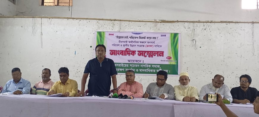 কমল পাটোয়ারী,মিরসরাই (চট্টগ্রাম) প্রতিনিধিঃ মিরসরাইয়ে অবস্থিত জাতীয় অর্থনৈতিক অঞ্চলে পরিবেশ বিনষ্ট করে উন্নয়ন না করার আহ্বান জানিয়েছেন মিরসরাই সচেতন নাগরিক সমাজ। এ সময় তারা ভারতকে দেয়া ৯০০ একর জমির বরাদ্দ বাতিলের দাবিও জানান।সোমবার (২৮ জুলাই) বেলা ১২টার দিকে জেলা পরিষদে এক সংবাদ সম্মেলনের মাধ্যমে বিভিন্ন দাবি তুলে ধরা হয়।