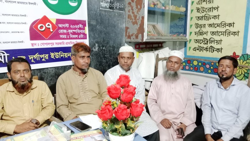 ৭ আগস্ট বৃহস্পতিবার বিকালে গোপালপুর সরকারী প্রথামিক বিদ্যালয়ে নির্বাচনী কেন্দ্র কমিটি গঠন করা হয়।প্রধান অতিথি হিসাবে উপস্থিত ছিলেন, জোরারগঞ্জ থানা আমীর মাওলানা নরুল হুদা হামিদী ,বিশেষ অতিথি হিসাবে উপস্থিত ছিলেন জোরারগঞ্জ থানা সেক্রেটারী জনাব মাইন উদ্দিন, থানা অর্থ সম্পাদক জনাব,আবদুল গফুর জোরারগঞ্জ থানা,সভাপতি শ্রমিক কল্যাণ,যুব ফেডারেশন আবু তাহের ,সভাপতিত্ব করেন,মাওলানা আবদুল মান্নান আমীর ৮ নং দূর্গাপুর ইউনিয়ন।প্রধান অতিথি বলেন,জামায়াতে ইসলামীর সরকার গঠিত হলে দেশের সকল মানুষ শান্তিতে বসবাস করবে। এ দেশের সকল ধর্মের মানুষ সুখে-শান্তিতে বসবাস করবে। মানুষ তার ন্যায্য অধিকার ফিরে পাবে।যেখানে কোনো তরুণ ও যুবক বেকার থাকবে না। মিরসরাইয়ের সবাই নিজ অবদান রেখে সারা দেশের মানুষের কাছে রোল মডেল হয়ে থাকবে।