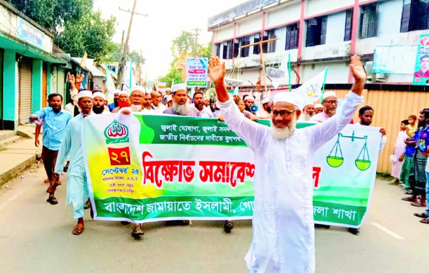 আইনি ভিত্তি সহ জুলাই সনদ বাস্তবায়ন, লেভেল প্লেইং ফিল্ড তৈরি এবং পিআর পদ্ধতিতে জাতীয় নির্বাচনসহ ৫ দফা দাবিতে বাংলাদেশ জামায়াতে ইসলামী গোপালপুর উপজেলা শাখার আয়োজনে বিক্ষোভ মিছিল ও সমাবেশ করা হয়েছে।