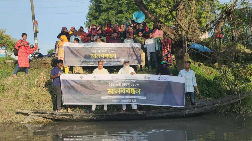বিশ্ব নদী দিবসে সাতক্ষীরায় নৌকায় মানববন্ধন